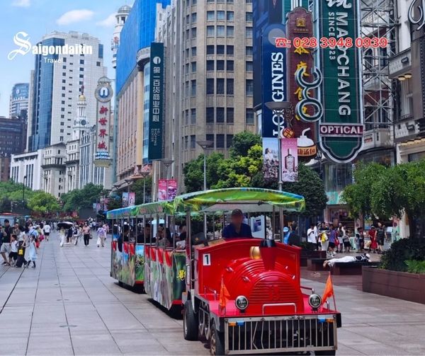 Một điểm thú vị ít nơi có chính là tàu điện mini chạy dọc phố Nam Kinh Đông. Những chiếc tàu nhỏ nhiều màu sắc đưa du khách len lỏi qua dòng người tấp nập, ngắm nhìn kiến trúc cổ xen lẫn hiện đại của Thượng Hải. Đây là lựa chọn tuyệt vời cho ai muốn nghỉ chân mà vẫn ngắm được toàn cảnh phố.