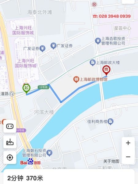 Thông tin từ Baidu Map đoạn đường từ Ga metro Tiantong Road đến Rei Flower Coffee Bar