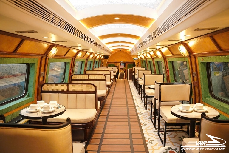Đoàn tàu gồm 5 toa xe ghế ngồi 2 tầng và 2 toa dành riêng phục vụ du khách check-in (Ảnh: VNR)