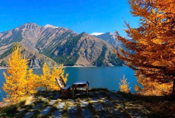 Mùa thu vàng ở hồ Thiên Trì, Trung Quốc. Ảnh: Lương Thanh Chương