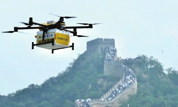 Drone giao đồ ăn ở Vạn Lý Trường Thành. Ảnh: Global Times