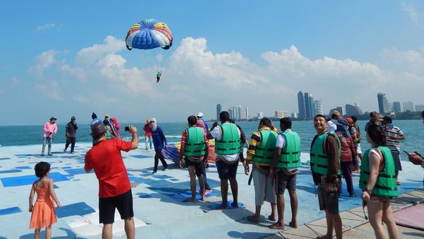Du khách tham gia trò chơi nhảy dù hấp dẫn tại Đảo Coral