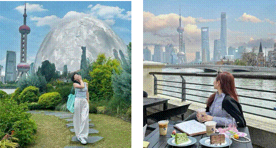 Đoàn tiếp tục đến North Bund Bay, nơi góc nhìn ấn tượng khiến cả tháp Minh Châu Phương Đông và Lục Gia Chuỷ như nằm gọn trong khối cầu kính khổng lồ. Đây là điểm check-in mới mẻ, mang lại trải nghiệm độc đáo khi vừa cảm nhận hơi thở hiện đại vừa chiêm ngưỡng vẻ đẹp đầy sáng tạo của kiến trúc đô thị